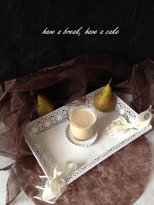 Voilà ma dernière réalisation! Bientôt la saison des soupes chaudes, mais celle que j'ai a vous proposer aujourd'hui, est une soupe tiède aux poires aux épices à pain d'épice!